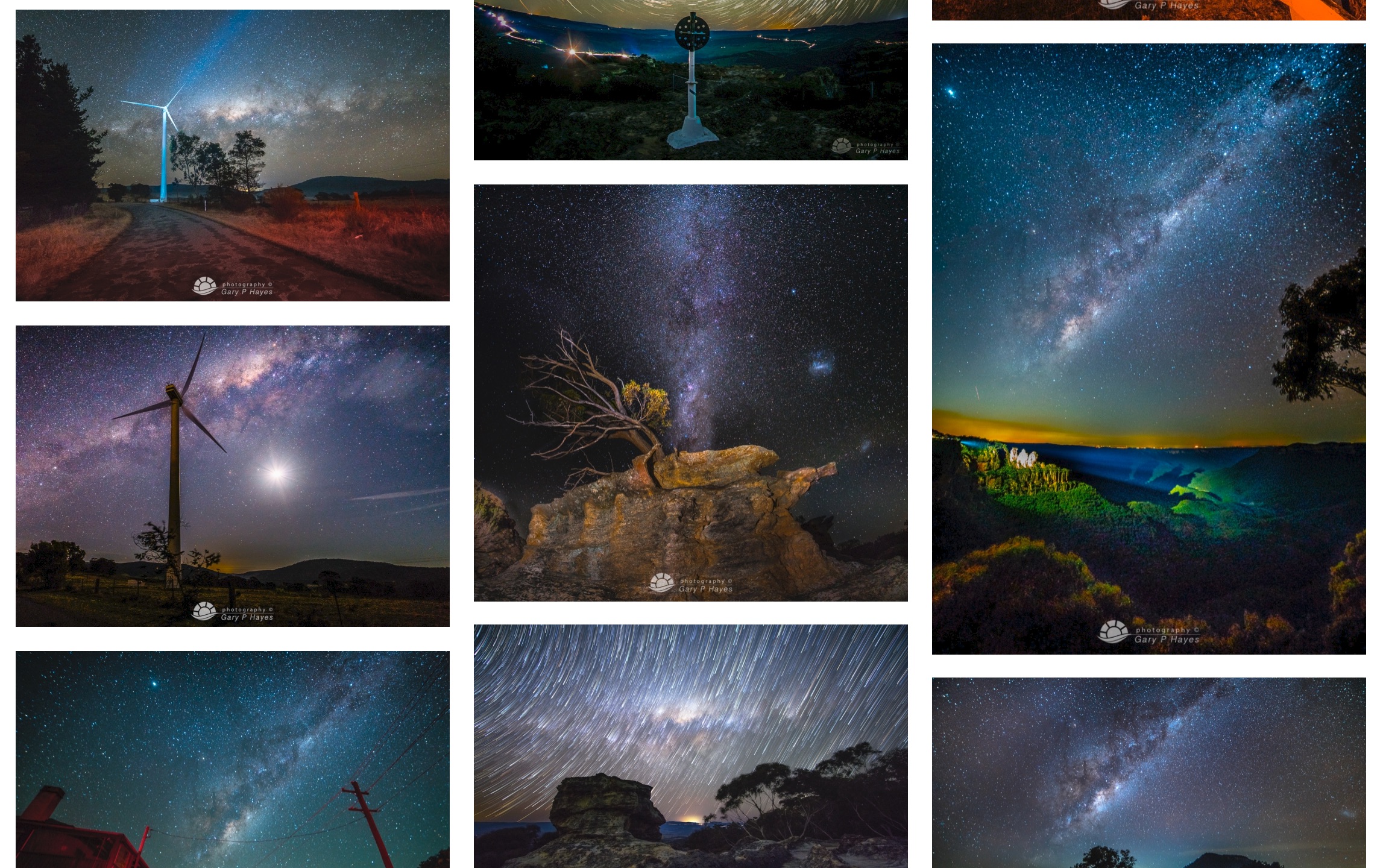 I have an unhealthy fascination with night and astro photography and particularly in remote national parks in Australia where the lack of ambient light means very strong milky way against iconic land features are possible. This is a small collection of shots in and from the Blue Mountains and Gardens of Stone but more from areas such as Mungo NP, Yosemite, Iceland and the Pinnacles in Western Australia will be added soon. Also a growing collection of the other key type of astro photography, Deek Sky – Nebulae, other galaxies, planets, the moon etc: – also both types, Milky Way / Landscape and Deep Sky have accompanying workshops now.